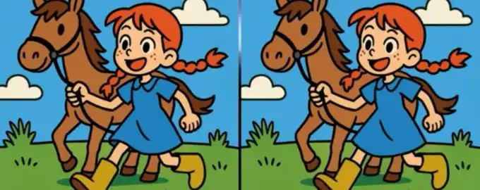 Този класически пъзел „Намери разликите“ проверява вашата внимателност и скорост. Между две идилични сцени с момиче и кон са скрити три несъвършенства.