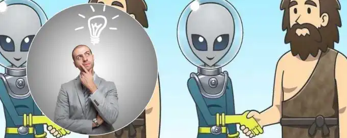 Този класически пъзел „Намери разликите“ те предизвиква да сравниш две на пръв поглед еднакви сцени с извънземни и пещерни хора.
