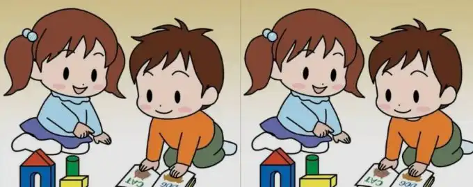 Този класически пъзел „Намери разликите“ те предизвиква да откриеш три несъответствия между две идилични снимки на деца, четящи книга.