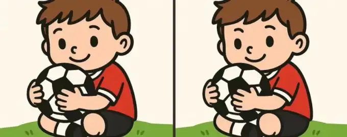 Този визуален тест ще провери вниманието ви към детайлите: на две на пръв поглед еднакви снимки с момче и футболна топка са скрити три малки разлики.