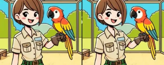 Този визуален пъзел с момиче и папагал изглежда просто, но за 17 секунди трябва да откриете три фини разлики. Уловката често е в детайли, които мозъкът пропуска на.
