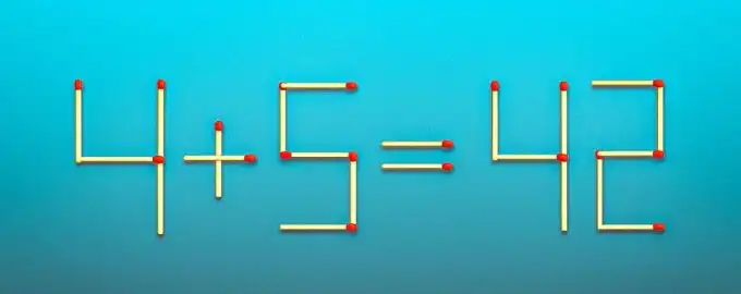 Трябва да поправите неправилното равенство 4+5=42, премествайки само две клечки. Ключът е да погледнете числата не само като цифри, а като форми, които