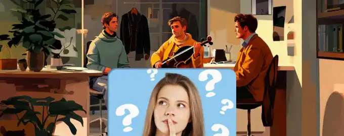 Този пъзел проверява вниманието и логиката чрез прост, но подвеждащ детайл: трима приятели, двама гости и цигулка в шкафа. Ключът е да забележите кой е „
