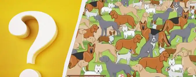 Този пъзел проверява вниманието и скоростта на възприятие. Сред множеството големи кучета в парка се крие едно малко кученце. Ключът е да сканирате изображението